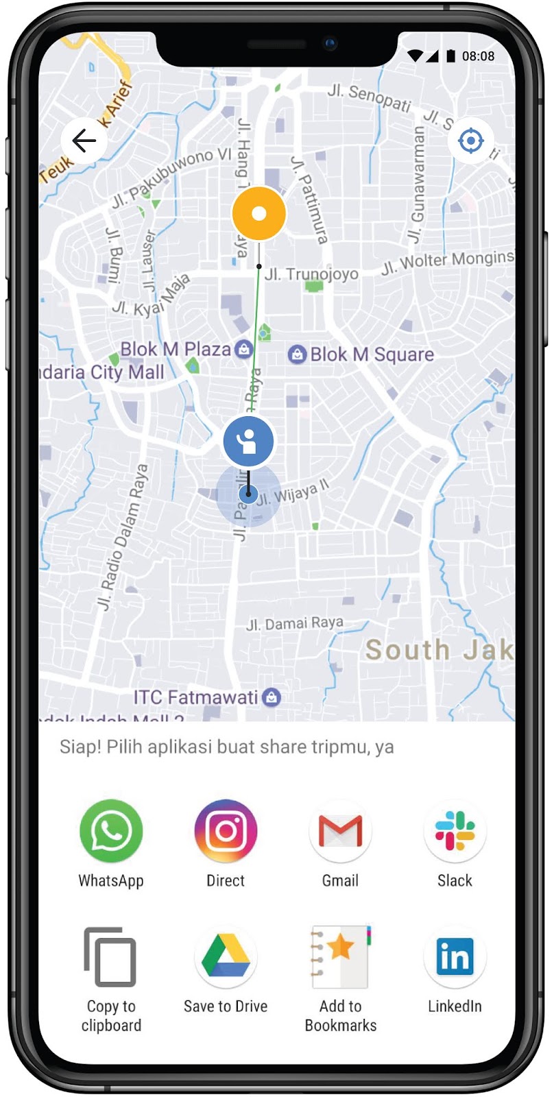 Fitur ini membuat kita pengguna GOJEK bagikan detil perjalanan kepada keluarga atau kerabat melalui Whatsapp, LINE, SMS, atau aplikasi bertukar pesan lainnya. Asyik banget kan, gak perlu repot screen capture.