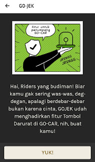 Semoga bisa segera diakses di GO-RIDE. Dan yang paling penting, saya berharap kita semua gak perlu menggunakan tombol ini. Cukup dilihat keberadaannya saja di aplikasi agar kita lebih merasa nyaman dan aman menggunakan GOJEK